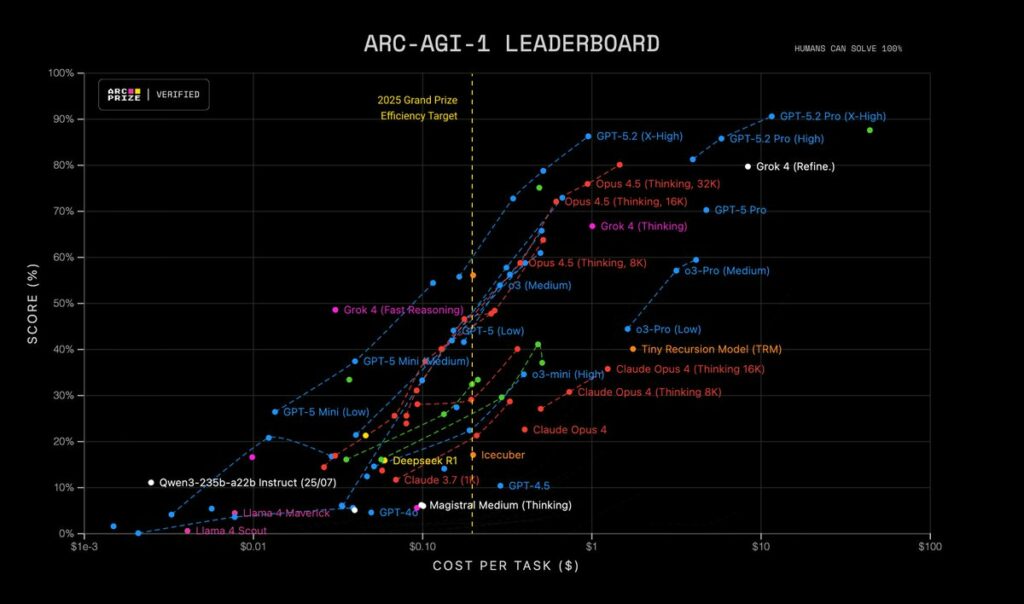 El gráfico presentado por ARC Prize muestra una tendencia casi vertical: mientras modelos como GPT-4, Claude 3.5 o Bard apenas registraban incrementos moderados en razonamiento complejo, los modelos GPT-5 elevaron la vara y, simultáneamente, abarataron el acceso a un nivel sin precedentes.